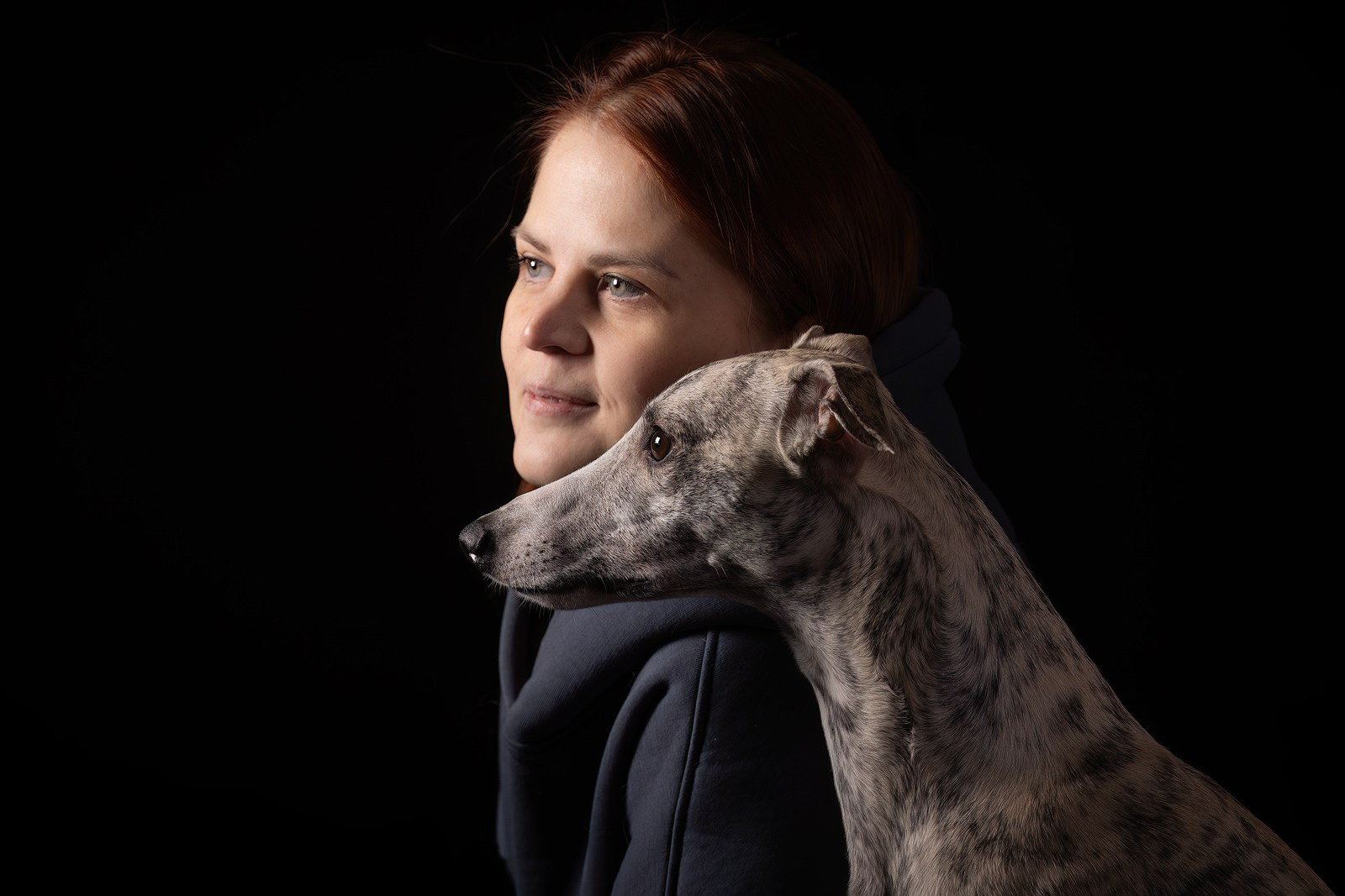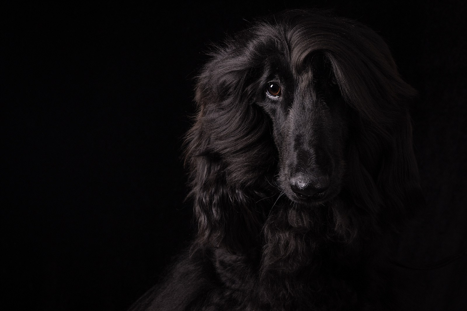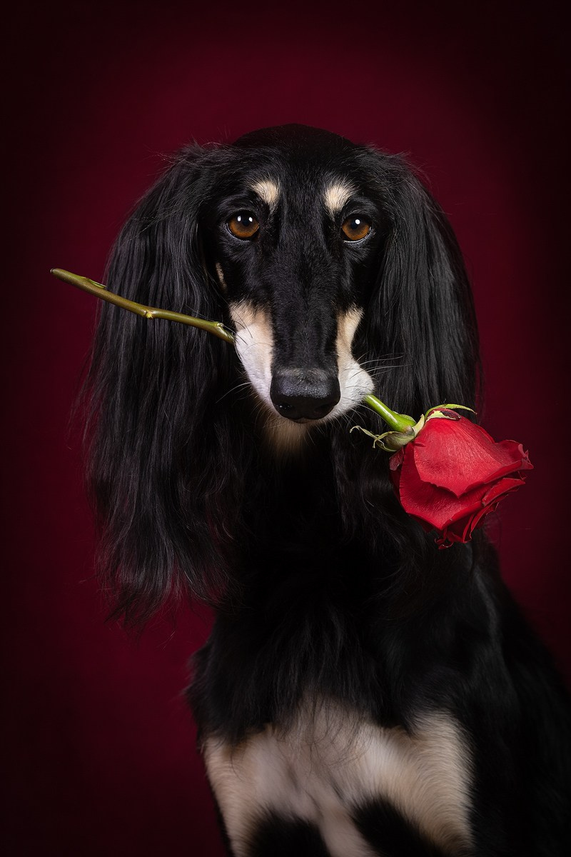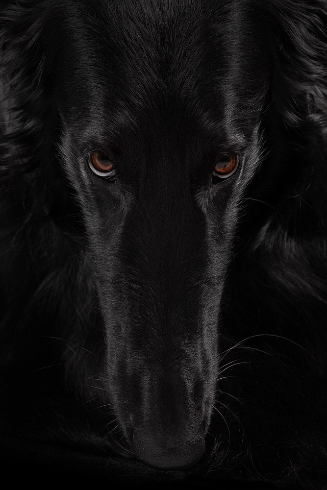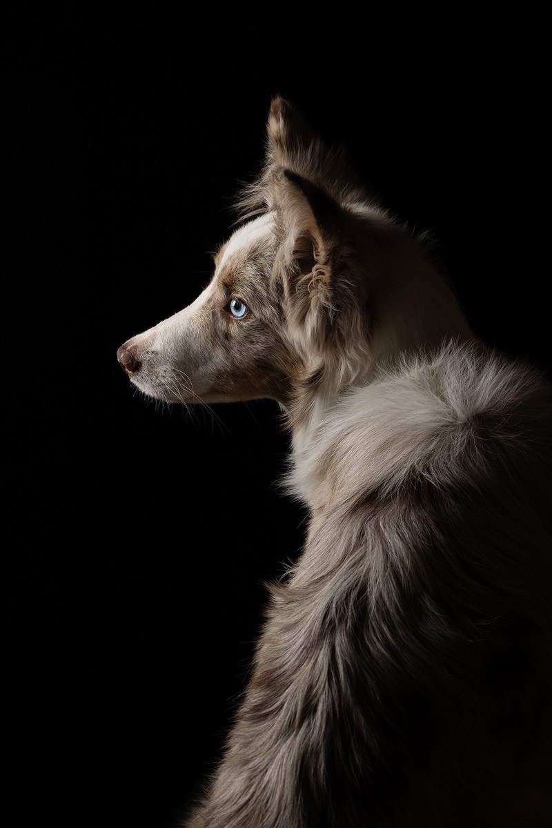 где ничего не отвлекает от естественной красоты собаки, подчеркнутой объёмным светом